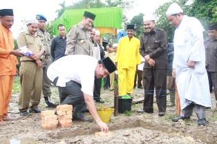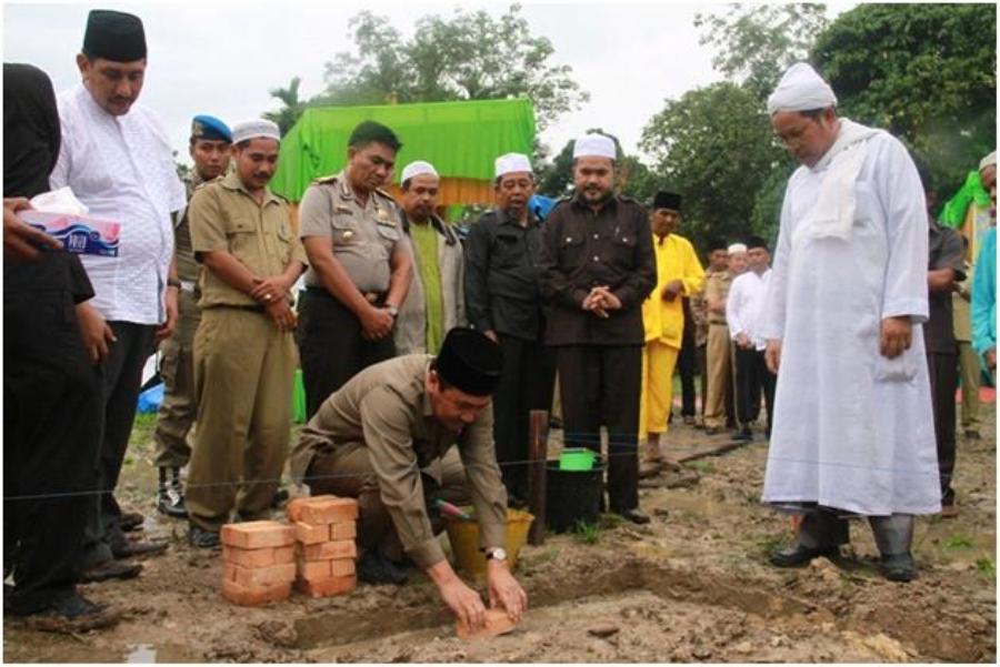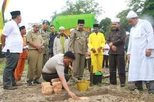 Camat Siak Hadi Sanjoyo saat meletakkan batu pertama pembangunan komplek majelis zikir