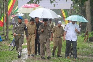 Bupati Siak H.Syamsuar tiba ditempat acara yang disambut dengan hujan deras