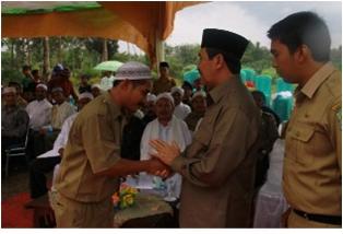 Bupati bersalaman dan disambut oleh sejumlah khalifah Thariqah
