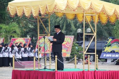 Wakil Bupati Inhil, Rosman Malomo memimpin upacara Peringatan Hari Pendidikan Nasional (Hardiknas), Rabu (2/5/12).