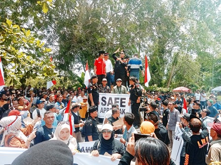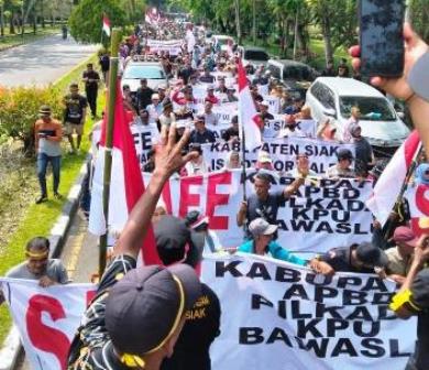 Demo Damai Di Kantor KPU Dan Bawaslu Kabupaten Siak Ribuan Masyarakat Yang Tergabung Di Aliansi Masyarakat Siak Tuntut Keadilan