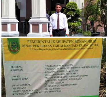 Fauzi Akmal.SH selaku pengacara Muda di pihak masyarakat beserta gabungan ormas Grib Jaya, Laskar Melayu Rokan Bersatu (LMRB) dan Jaringan Pendamping Kebijakan Pembangunan (JPKP) yang berada di Palika turut bergabung memberikan statement terkait proyek 11,5 Milyar Program Penyelenggaraan Jalan, Peningkatan Jalan Kuning Jalil Dak Penugasan Anggaran Pendapatan Belanja Daerah Kabupaten Rokan Hilir Tahun 2024, pada media ini Kamis, 29 Mei 2025.
