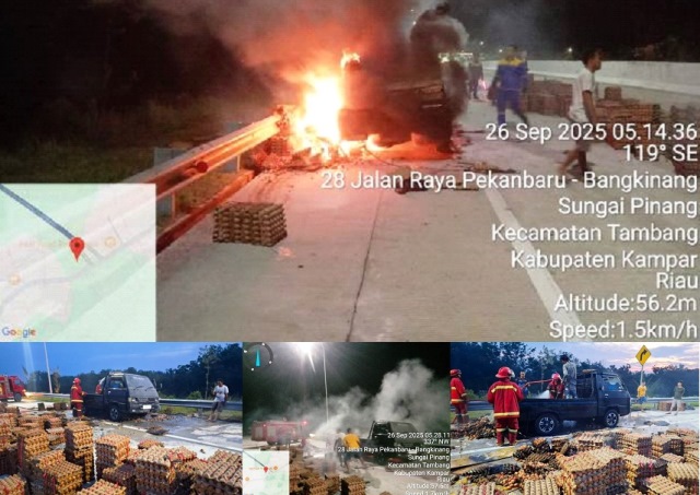 Kebakaran terjadi tepatnya di KM 10/400 B Tol Pekanbaru–Bangkinang, saat sebuah Mitsubishi Colt L300 dengan nomor polisi BA 8826 ME yang dikemudikan Ade Putra (35), warga Payakumbuh, tiba-tiba mengeluarkan api dari bagian kiri belakang dekat ban. Di dalam kendaraan juga terdapat seorang penumpang bernama Endrianto (42).