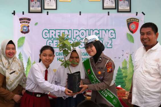 Halaman SLB Negeri Siak tampak berbeda. Udara terasa sejuk, dipenuhi tawa riang anak-anak yang bersemangat memegang bibit pohon kecil di tangan mereka. Di antara wajah-wajah polos itu, tampak personel Polres Siak hadir dengan senyum dan sapaan hangat, Senin pagi (13/10/2025). Mereka datang bukan dengan sirine dan seragam dinas yang kaku, melainkan membawa pesan cinta terhadap bumi melalui program Green Policing Generasi Gen Z: “Cinta Lingkungan, Peduli Hutan, dan Penyuluhan Lingkungan Hidup.”