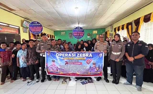 Satlantas Polres Siak kembali melaksanakan kegiatan Police Goes to School dalam rangka Operasi Zebra Lancang Kuning 2025, Selasa (18/11/2025). Kegiatan yang dimulai pukul 11.00 WIB ini berlangsung di SMPN 1 Mempura dan disambut antusias ratusan pelajar serta para guru.