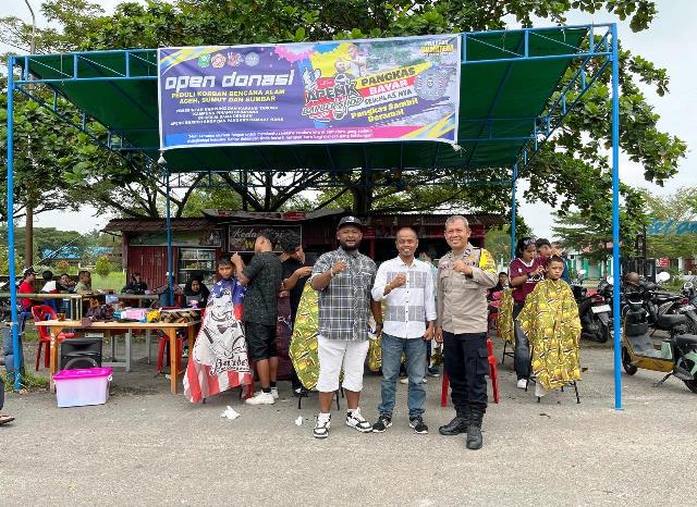 Penggalangan dana dilakukan dengan cara unik, warga dapat mencukur rambut dengan sistem bayar seikhlasnya, dan seluruh hasilnya akan disalurkan untuk bantuan bencana.