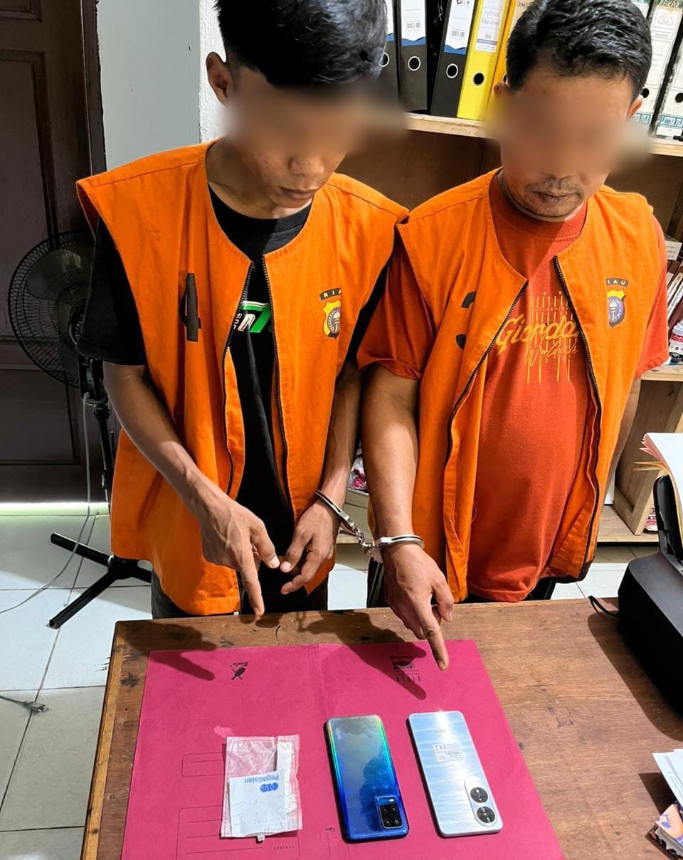 Dua tersangka yang diamankan masing-masing berinisial M.A. (33) dan S. (47). Berdasarkan hasil pemeriksaan awal, M.A. berperan sebagai pengedar narkotika jenis sabu, sedangkan S. berperan sebagai pembeli.