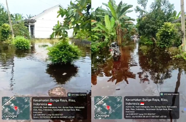 Curah hujan yang terus mengguyur wilayah Kecamatan Bungaraya dalam beberapa hari terakhir membuat warga Kampung Tuah Indrapura diliputi kekhawatiran. Pasalnya, genangan air mulai memasuki area permukiman dan jalan kampung.