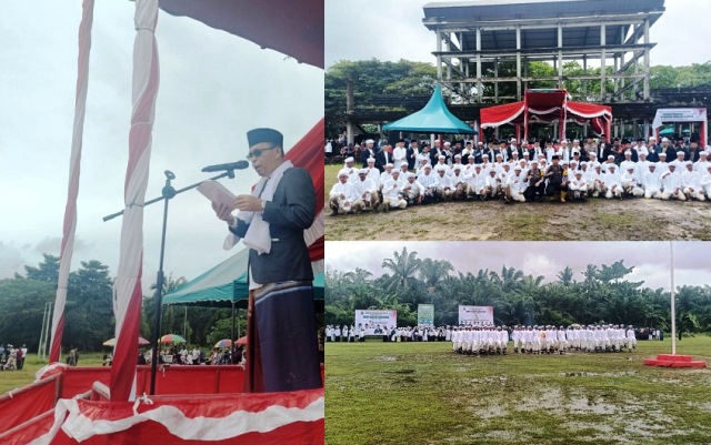 Gerimis tipis menyelimuti langit Rantau Panjang Kiri, Kecamatan Kubu, Kabupaten Rokan Hilir, pada Rabu (22/10/2025) pagi. Meski lapangan Stadion Mini tempat upacara digelar tampak becek, semangat lebih dari 700 santri dari 19 pondok pesantren tak sedikit pun surut. Mereka datang dengan truk dan bus, sebagian menempuh perjalanan jauh, untuk merayakan Hari Santri Nasional Ke X yang tahun ini mengusung tema penuh makna “Mengawal Indonesia Merdeka Menuju Peradaban Dunia.”