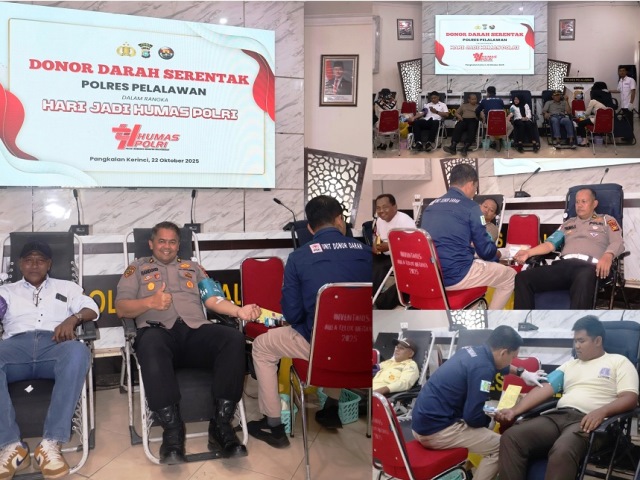 Polres Pelalawan menggelar kegiatan donor darah dalam rangka memperingati Hari Ulang Tahun (HUT) Humas Polri Ke-74 Tahun 2025. Kegiatan ini berlangsung pada hari Rabu, tanggal 22 Oktober 2025, sekira pukul 08.30 Wib, di Aula Teluk Meranti Polres Pelalawan.