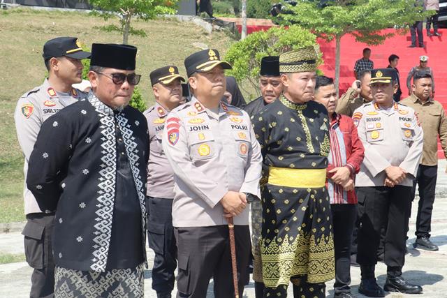 Kapolres Pelalawan AKBP John Louis Letedara, S.I.K Menghadiri Acara Pengukuhan Hulubalang LAMR Kabupaten Pelalawan Masa Hikmat 2025–2030