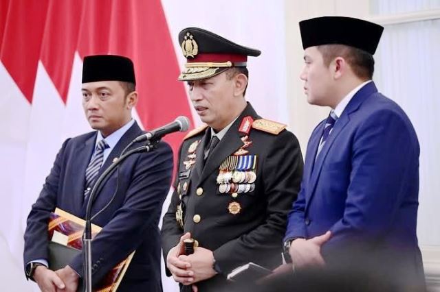 Menteri Sekretaris Negara Prasetyo Hadi, Sekretaris Kabinet Teddy Indra Wijaya, dan Kapolri Jenderal Listyo Sigit Prabowo menyampaikan keterangan pers di Istana Merdeka, Jakarta, Jumat (07/11/2025), menyusul terjadinya ledakan di lingkungan SMA Negeri 72 Jakarta Utara pada siang hari tadi.