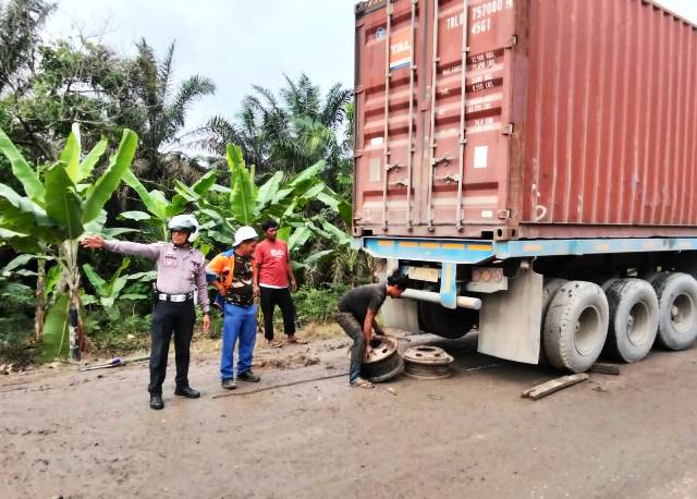 JALAN RUSAK RAWAN KECELAKAAN DI MAREDAN BARAT, UNIT LANTAS POLSEK TUALANG TURUN TANGAN