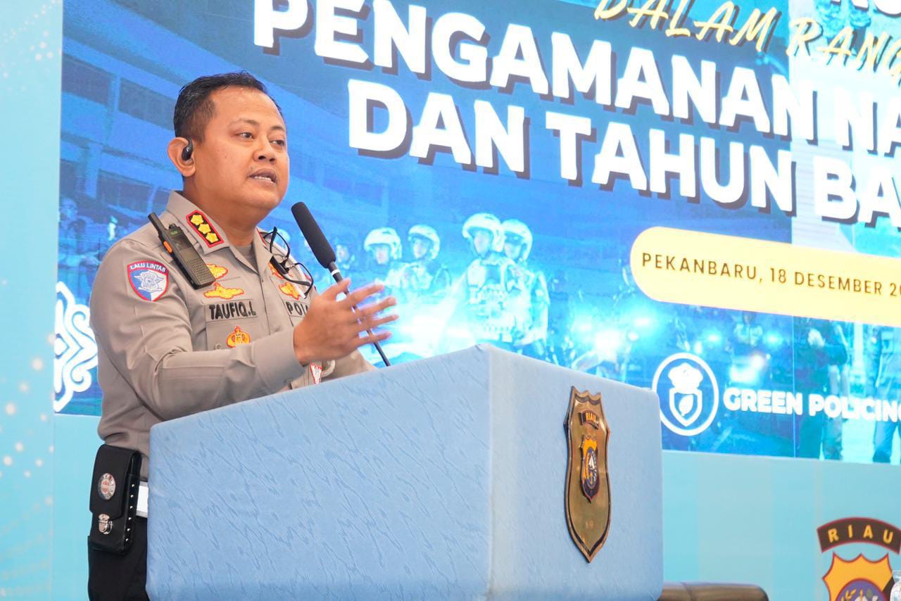 “Operasi Lilin Lancang Kuning 2025 akan berlangsung selama 14 hari, mulai 20 Desember 2025 hingga 2 Januari 2026. Kami menekankan kepada seluruh jajaran untuk terus meningkatkan inovasi, khususnya dalam pencegahan kecelakaan lalu lintas dan penguraian kemacetan guna mewujudkan kamseltibcarlantas di wilayah hukum Polda Riau, ”ujar Kombes Pol Taufiq.