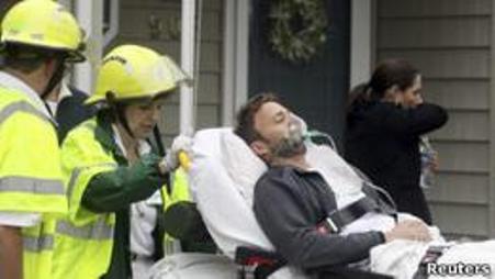 "Saya mendengar tiga ledakan keras, dan kemudian asap hitam tebal membubung ke angkasa," kata seorang penduduk Felissa Ezzel (71) yang tinggal tak jauh dari lokasi kecelakaan.